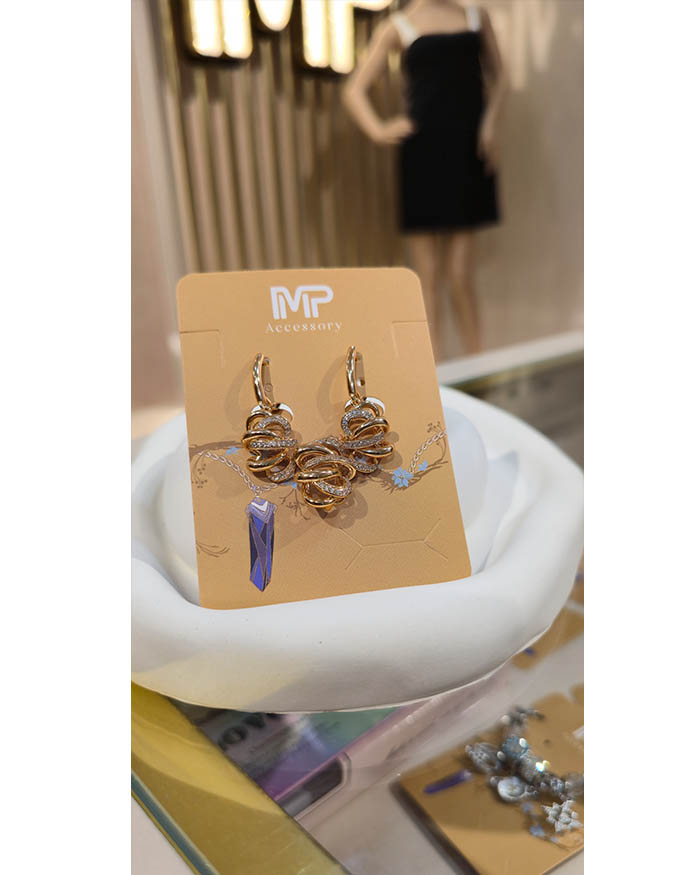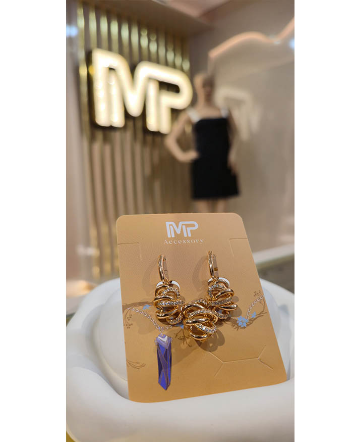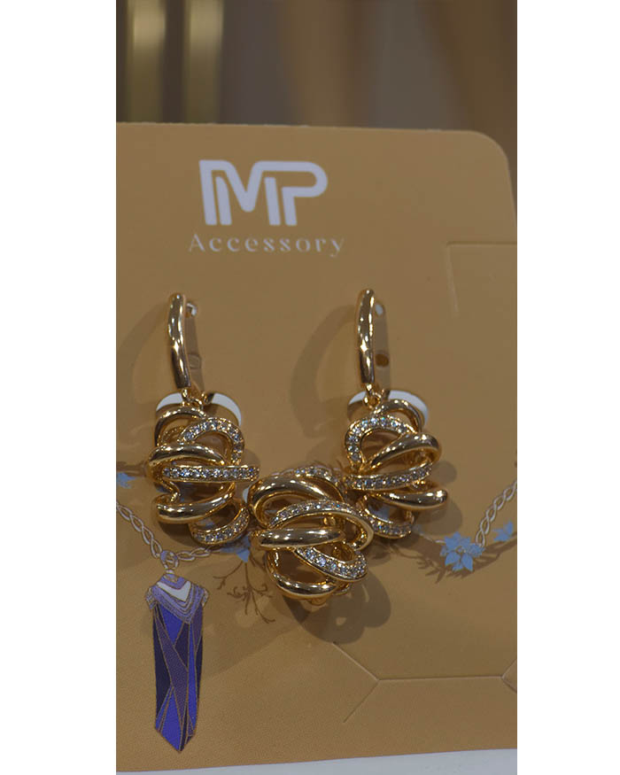 نیمست زنانه ژوپین با روکش طلا و طراحی خاص گرهمانند، ترکیبی از ظرافت و درخشش را برای استایل بانوان به ارمغان میآورد. این نیمست شامل یک پلاک و یک جفت گوشواره است که با فرم سهبعدی پیچخورده و ردیف نگینهای ریز براق، جلوهای لوکس و متفاوت ایجاد میکنند.