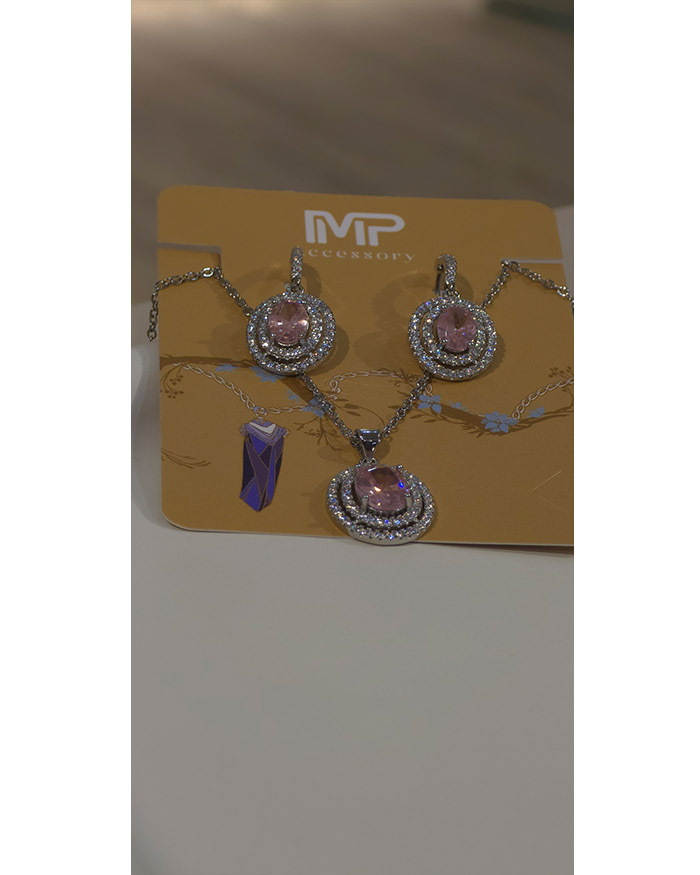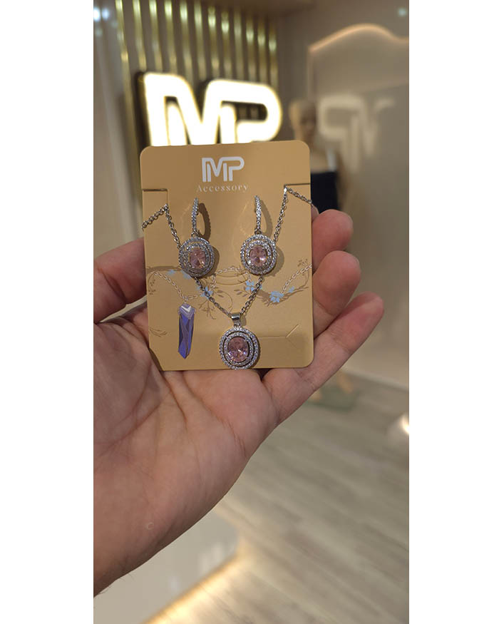 نیم‌ست گردنبند و گوشواره MP Accessory – طرح بیضی سنگ صورتی